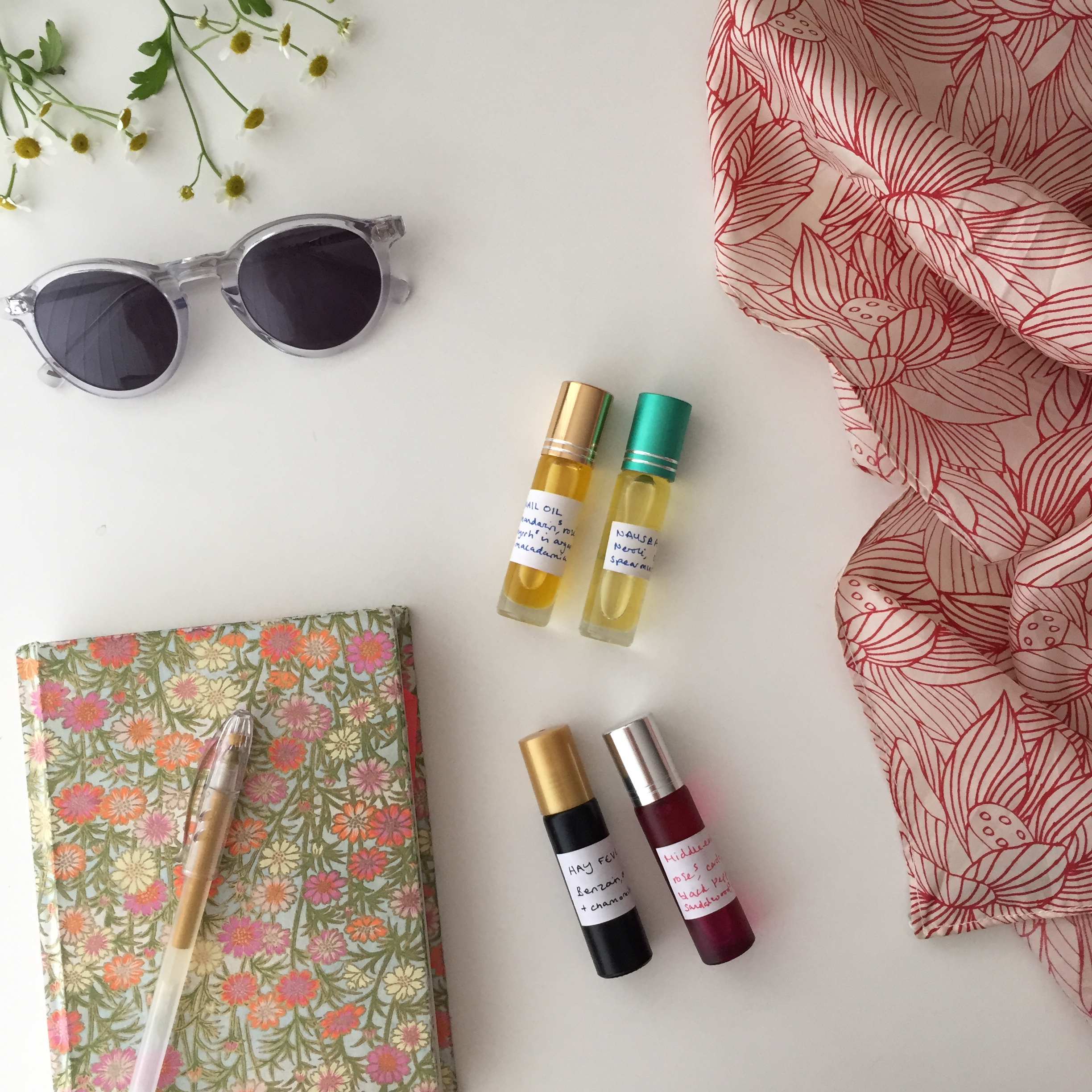 - lavender (Lavandula angustifolia), chamomile (roman), neroli (orange blossom), (you can use one or all of the oils suggested but the total no. of drops should add up to 10).