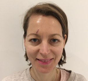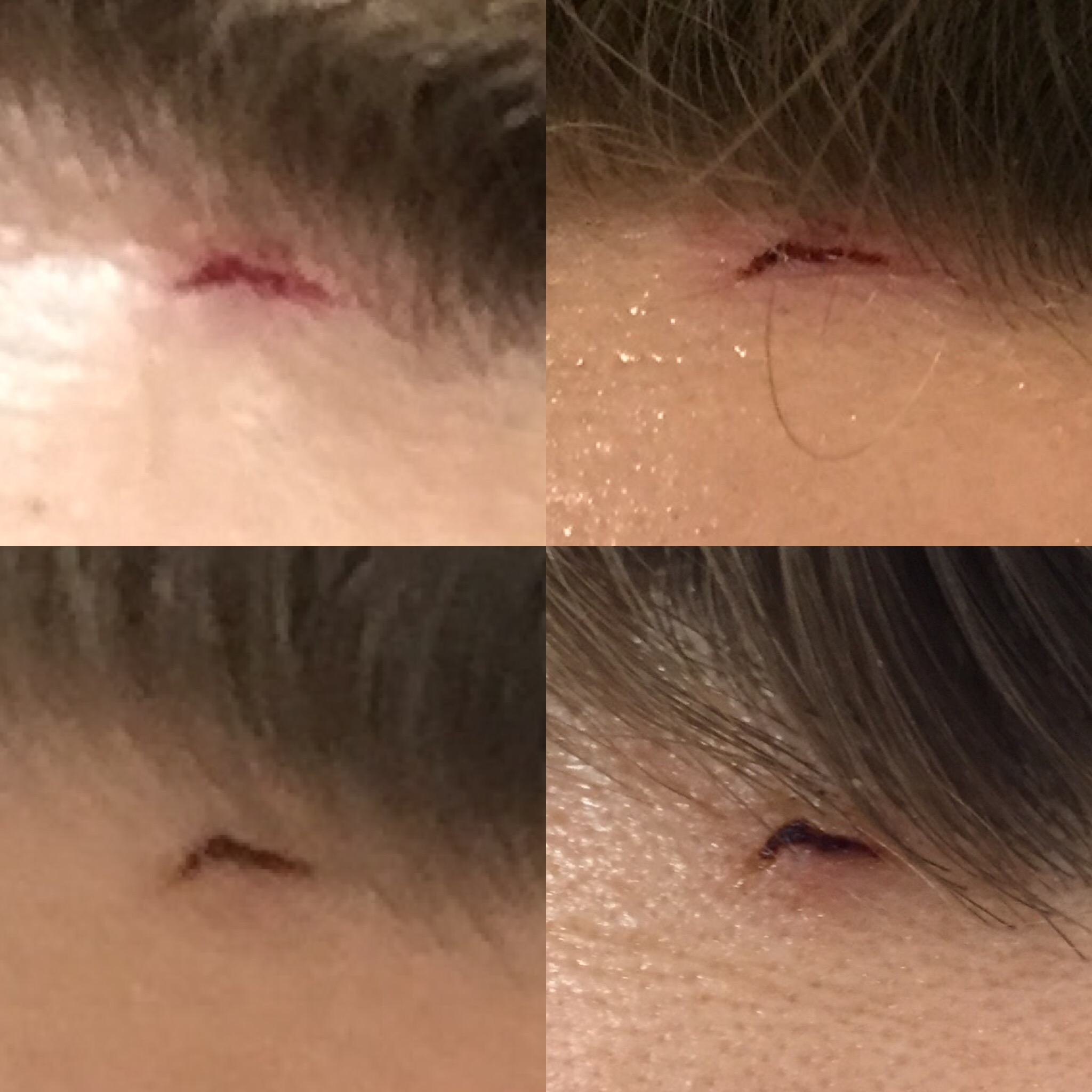 Last month a cabinet of heavy perfume bottles tipped onto my head and left me with two cuts on my forehead.