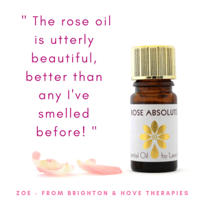 “The rose oil is utterly beautiful, better than any I’ve smelled before!” Zoe from Into-Beauty at Brighton & Hove Therapies.